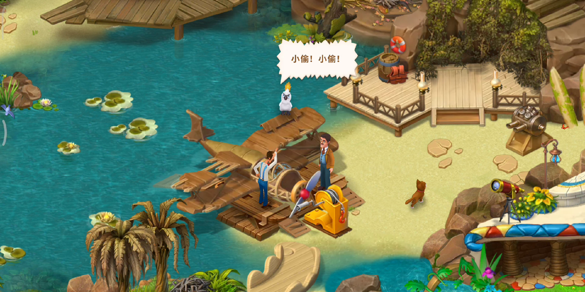 【24】修理飞机✈️的秃秃又被鹦鹉罗吉偷袭了,一屁股坐进水里来不及清理