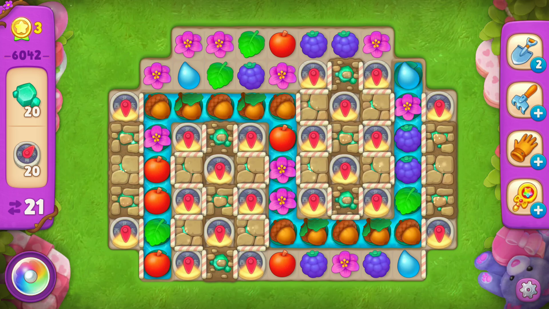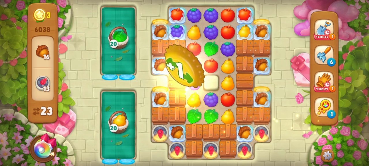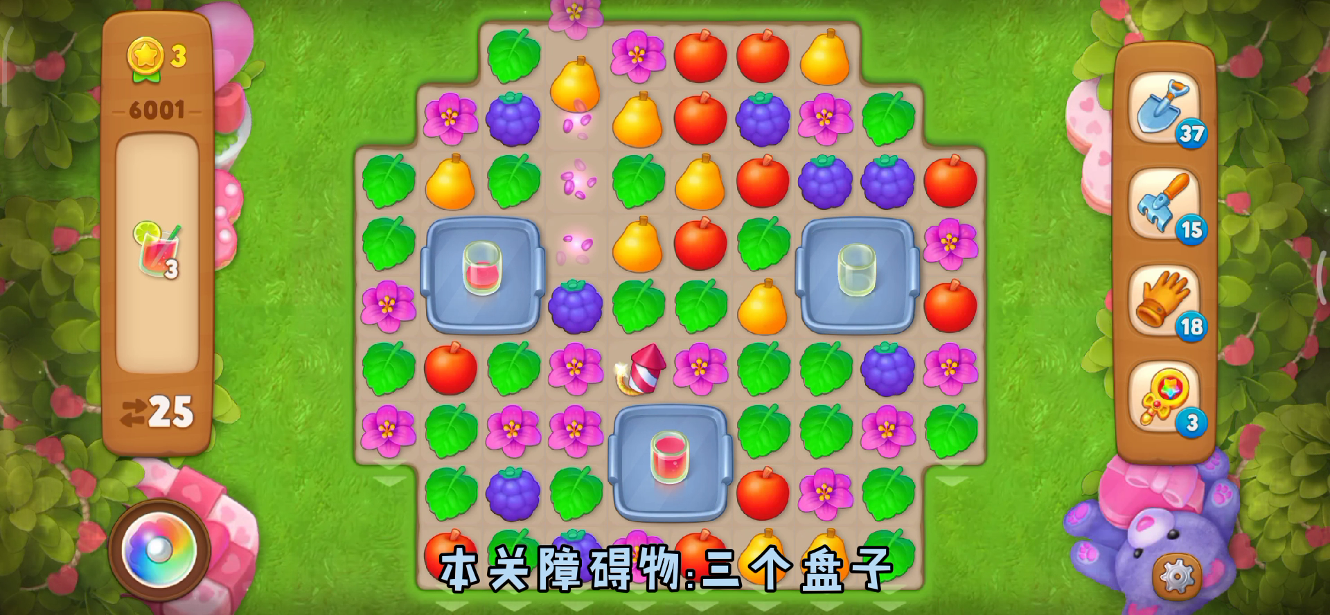 先按篮子中所显示的数目收集制定图块清除野餐布,然后消除箱子,这一关最好能凑齐双彩,在清除野餐布后使用,可以一下集齐指南针。