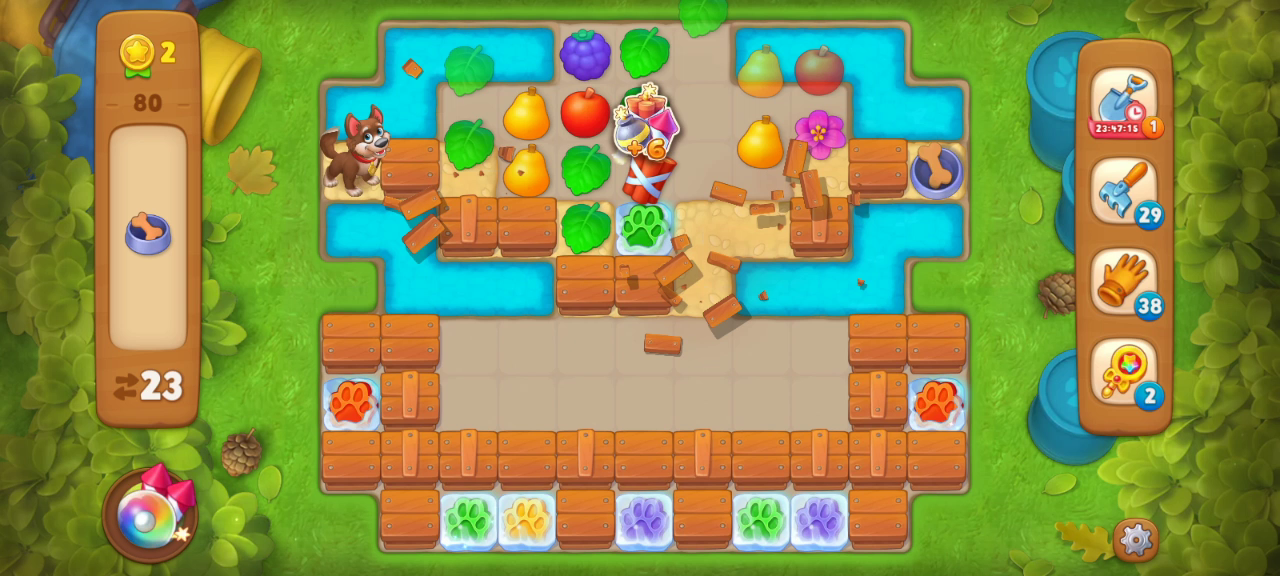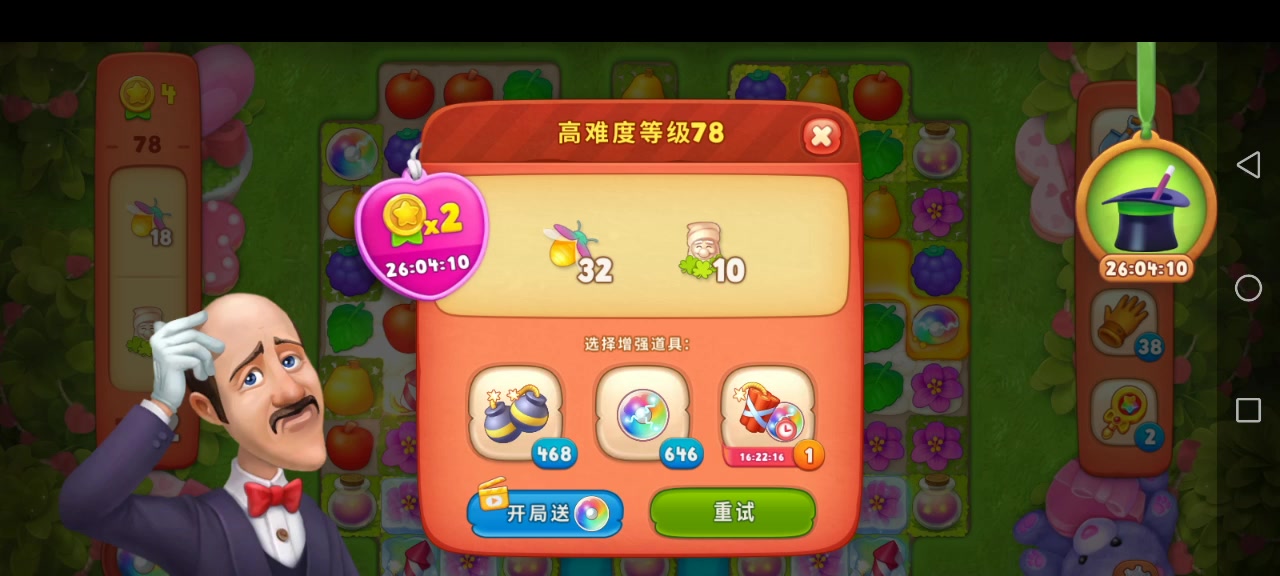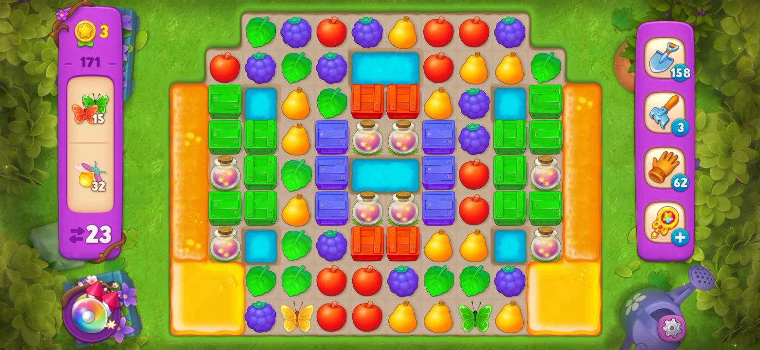 【关卡介绍】 关卡目标:蝴蝶×15,萤火虫×32 关卡步数:23步 关卡特殊元素: 蜂蜜、彩色箱子、河道 关卡难度:超高难度 【关卡攻略】 本关有详细的图文攻略。