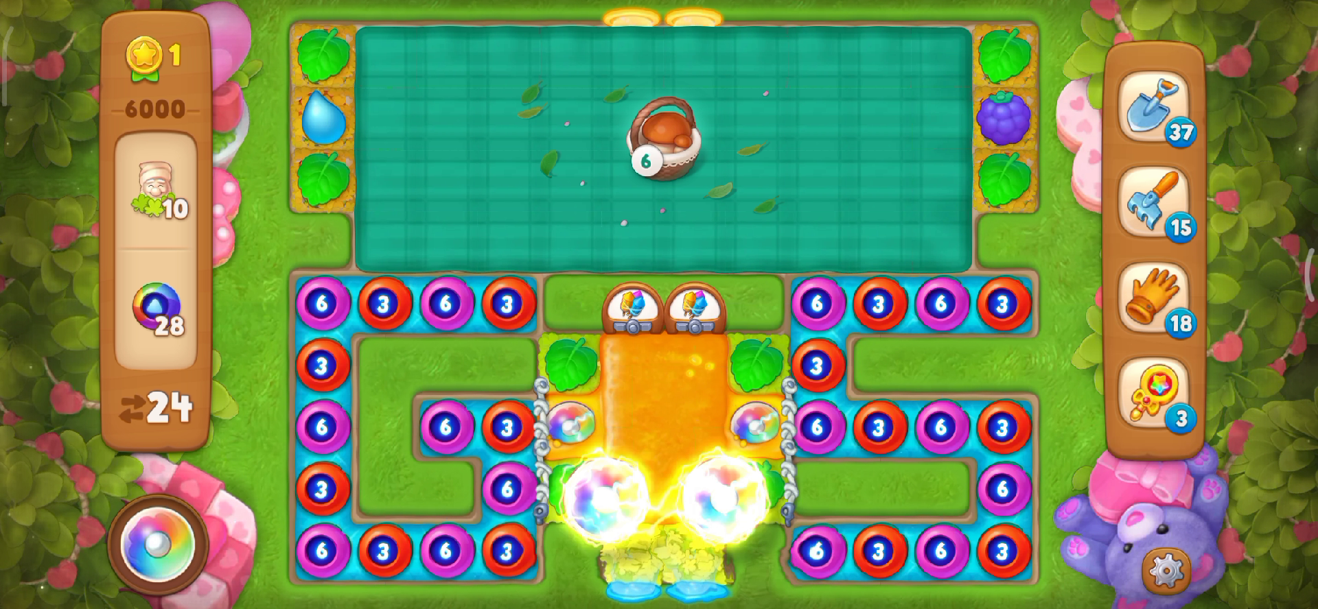 先用彩虹弹消除橡实,然后清除冷却机,最好能凑到双彩就可以轻松过关!