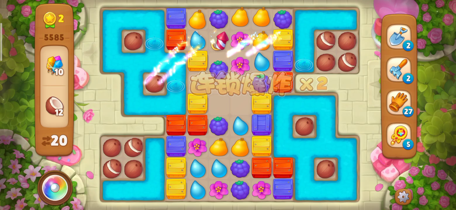 把开局移动一步得到炸弹向上移,炸到柠檬汁下面的箱子,后面会轻松一点