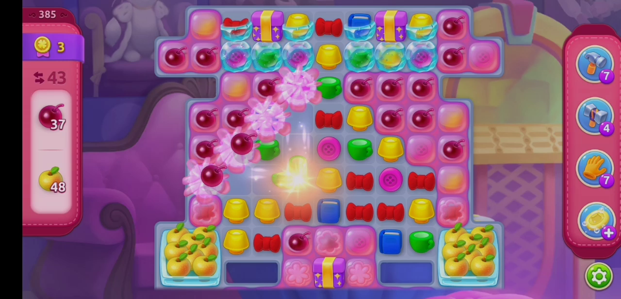 本关主要收集蝴蝶,应注意蝴蝶的出现频率。障碍还是野草,避免野草封闭道路,导致蝴蝶静止不动,妨碍下一只的出现。本关彩虹合成较为容易,可利用彩虹收集蝴蝶。