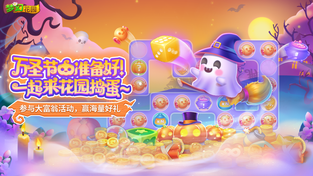 活动时间:10月30日-11月12日 当南瓜灯点亮花园的小径, 万圣节已悄然降临, 快来开启甜蜜刺激的冒险吧! 参与大富翁,闯关收集糖果, 即可获得全新节日皮肤【金色万圣节】, 快把你的花园装扮成最受欢迎的捣蛋据点~