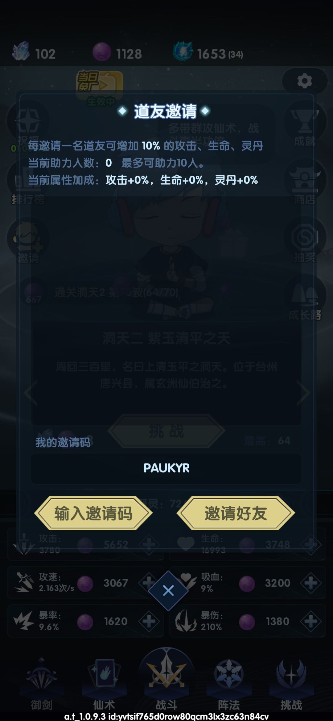 填写邀请码IQKJGJ 兑换 ARXUQQOB 灵石*20 灵丹*200 ZRHKQHZK 灵石*40 灵丹*500 AOIDJWLI 灵石*100 YLSTUDIO 灵石*100 灵丹*1000 OGMJMRBE 强化石*100 ISULXMYA 洗练石*20 QRWABAKK 宝锤*2