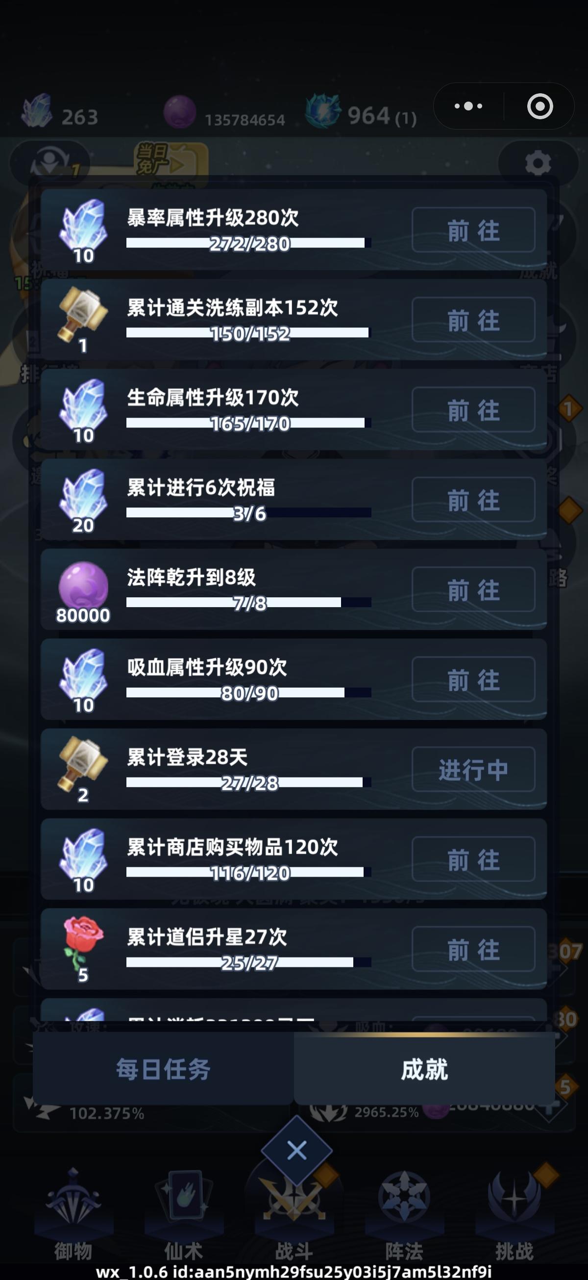 领礼包码在评论区攻略:一,洞天1-10,80波,固定灵石30,不受体力影响,没体力进也是30灵石,其他都一样,灵石产出是固定的。 体力不满进关,不扣体力,奖励1倍灵丹 福地3,450波,180灵石,时间40分钟左右。【太虚幻境】通关450波,主面板1300万攻击可以尝试。 心魔1-7,64灵石,80波,通关大概6分钟。主要刷灵石用,预留7500,买商店玫瑰50,很缺很缺。 祝福,200