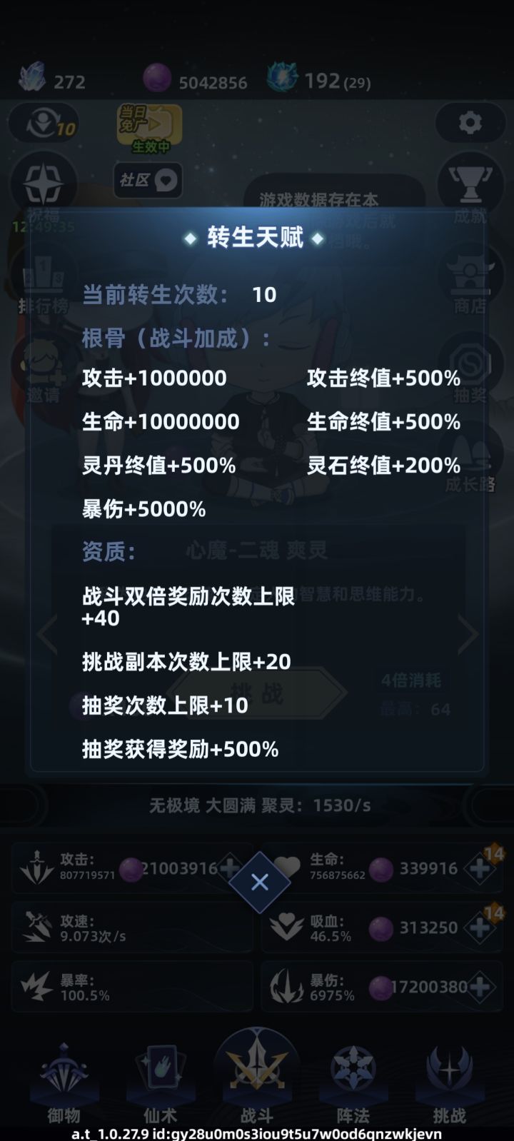转数越高。每次重启一次的时间缩短一些。我都怀疑。之后是不是能做到一天一转呢?目前还没看到200转以上的玩家。真佩服这些的毅力。我怕是玩不到那么高转。毕竟之后都是重复工作。很容易弃坑。