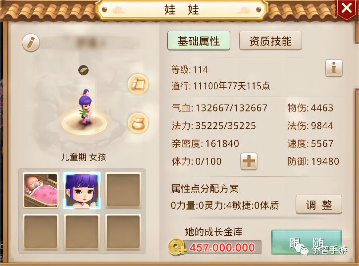 快速提升娃娃亲密度: 1、在娃娃养成期间,尽量保持每天花1000万游戏币进行培养,这样可以获得800点的亲密值。这个阶段大约持续1个月,所以你可以在这个阶段获得大约25万左右的亲密度。 2、等到娃娃能出战之后,每天带着娃娃参加100次左右的刷道或者巡逻任务,这也可以快速增加亲密。 合适的娃娃和神童 1、如果你选择的是反震体木,那么带一个体加点的木娃娃会是一个不错的选择。 2、如果你有多个娃娃,那么