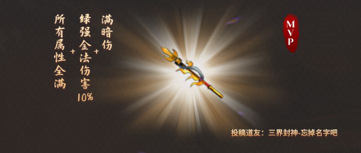 今天来见识一下道友们的极品金枪!这3把是不同等级段的改7法金枪,都有绿强金法伤害10%,不过暗伤完美度有所不同,究竟谁能拿下MVP呢? 大神点评 完美度100%风火游龙枪 三界封神-忘掉名字吧:不知道我这一个逆天残刃,道友扛得住否?二哈大晴天:扛不住,真的扛不住,道友你这把武器发出的逆天残刃太猛了!所有属性全满+绿强金法伤害10%+满暗伤,别的不说,这把武器要是在改7法枪里面称第2,谁敢