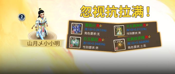 今天来见识一下道友们的极品火扇~忽视目标抗昏睡30%熠焰通灵扇,强火法伤害10%熠焰通灵扇,还有极致输出+强力障碍火扇组合!究竟谁能拿下MVP? 大神点评忽视目标抗昏睡30%熠焰通灵扇铁骨铮铮-…^静静:一发绿双满,可惜改不起了哈哈~二哈大晴天:忽视目标抗昏睡30%+满暗速,要知道这可是改6装备,真是装备不可貌相,海水不可斗量,外表平平,却内含洪荒之力。这把武器本来只是典型的敏火武器,道友