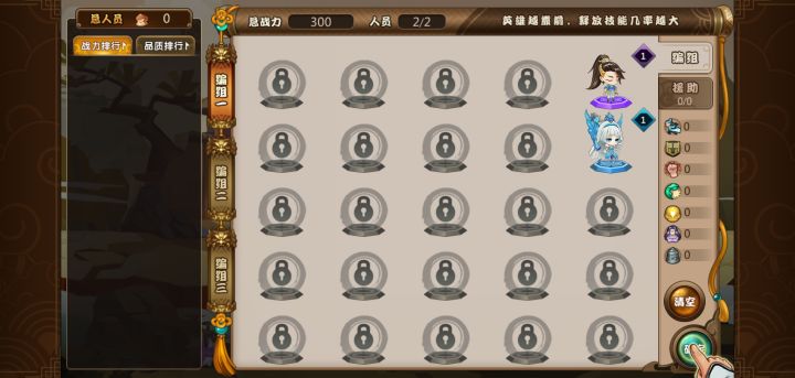 新手个别盲区指导(建议型的可根据自己的理解来,不需要非得按照所写的来玩)(主要内容:根据帖子有些玩家发布的问题来写的,算不上是完整的攻略)一开始进去有新手指引,指引完后,就开始推图,一开始获得的英雄没什么好升级的,所以先把所有能升级的材料给主角。 “寻宝”一开,马上去获取法宝所需要的锻造材料。 这里先把主角的第一个禁术先升满(主角的禁术在法宝里) 法宝等各种提升战力的地方在人物界面,点击列表