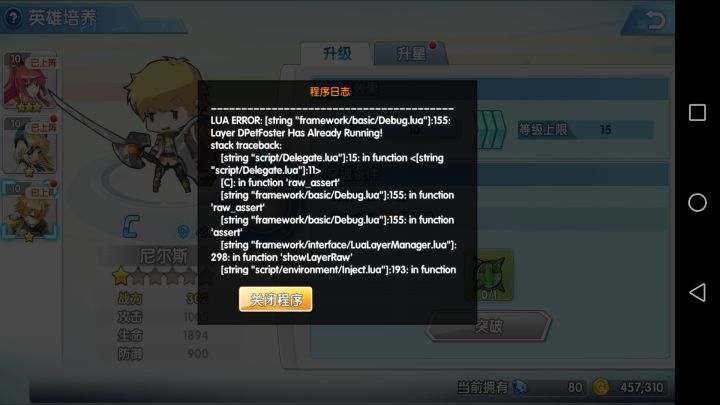 打竞技场,显示错误闪退2次,打金币,打完了和我说错误呵呵