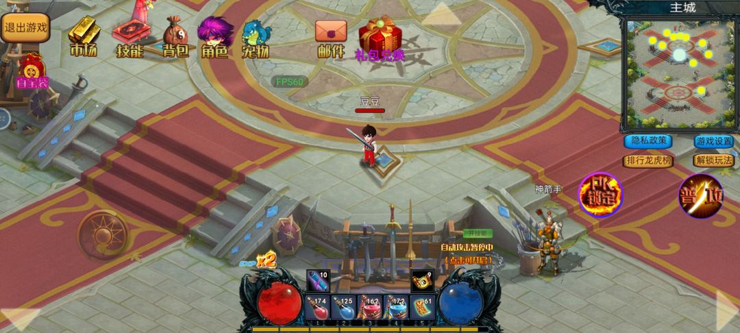 新手开荒: 1、新手上线666888激活新手礼包,把背包的装备全部带上,嗜血套装是前期的神装,能回血抗怪,前期就用嗜血套混; 2、送的宝石碎片,把角色里面的攻击宝石、防御宝石、经验宝石全部升到3级,所有怪物都可以爆三种宝石碎片,慢慢存,越后面的图爆率越高; 3、不想看广告的可以找群主做个小任务就可以获得免广了,有了免广百宝袋每天20次灵币点满,自动打怪和双倍经验全部点到上限,就可以开荒了; 4、前