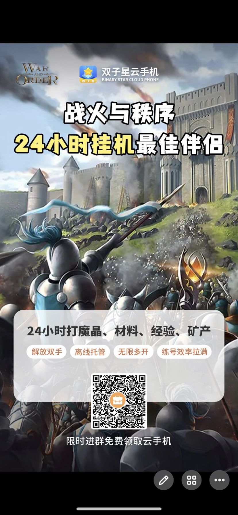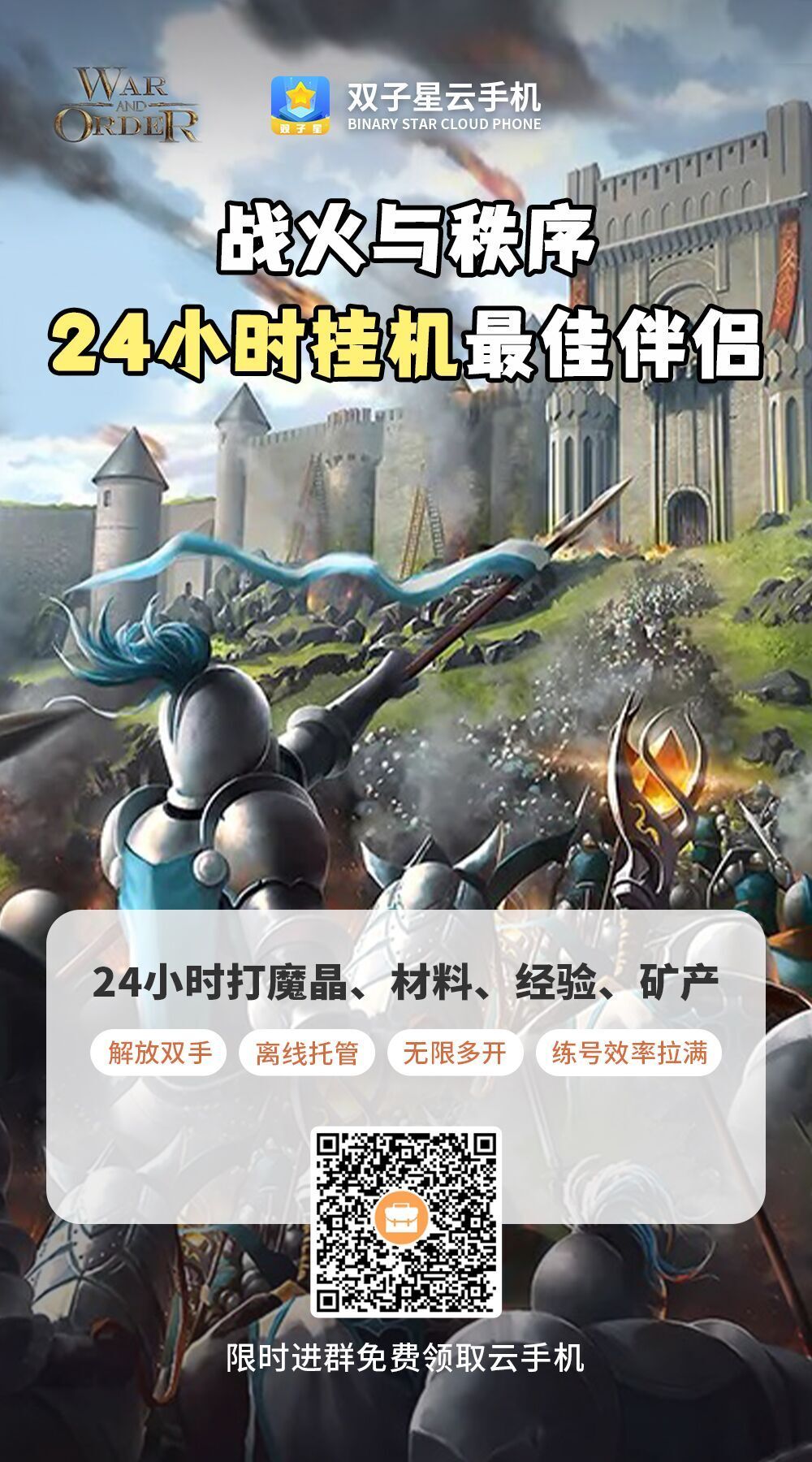 各位领主大人们晚上好,感谢各位领主大人关注《战火与秩序》的官方微信公众号,这里不光有游戏公告,资讯和攻略,更会不定期的发放游戏内丰厚福利! 下面小编告诉大家一个如何获得大量钻石及丰富道具的超级攻略!绝对不忽悠! 怎样获得免费钻石?! 1. 完成部分重要任务即可获得钻石奖励; 2. 第一次加入联盟即可获得钻石奖励; 3. 在世界中采集宝石矿洞,可以获得钻石奖励; 4. 在限时活动中可获得大量钻石奖励