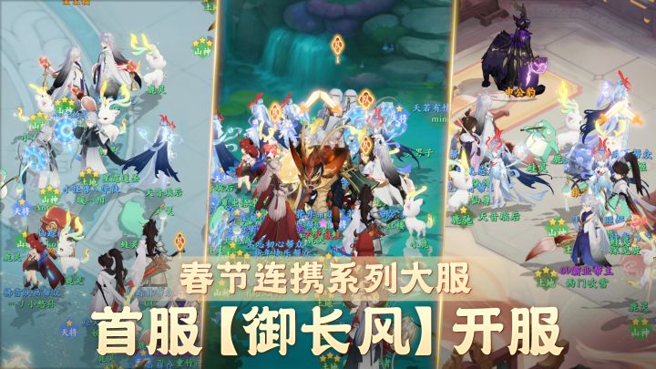 春节连携系列服首服【御长风】今日正式开服啦,专属开服福利同步起航!初入春节连携系列服首服【御长风】,到处都是赶着“赴约”的大人们,世界频道更是热闹!大人们冲新区这么热闹,可别忘了正事!赶快跟着小妖的清单一步步打勾勾,把福利通通打包带走!1、上线立领,预约、预充、预组队奖励!2、上线立享,双卡8折、老玩家直升37级、外观继承、瓜分10亿!3、3月25日!三服合一,感受超高人气!狐小妖:新