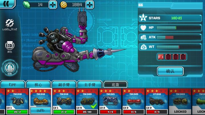 IF后的为条件,满足条件才会触发THEN红色的为条件关联属性。CHASSIS HP底盘生命值 CORE HP核心生命值HEAD HP头部生命值 BACK ARM HP副手生命值FRONT ARM HP主手生命值 BATTLE TIME开战时间绿色为满足条件后采取的行动ROTATE BACK ARM DOWN顺时针旋转副手x° ROTATE BACK ARM UP逆时针旋转副手x° RO