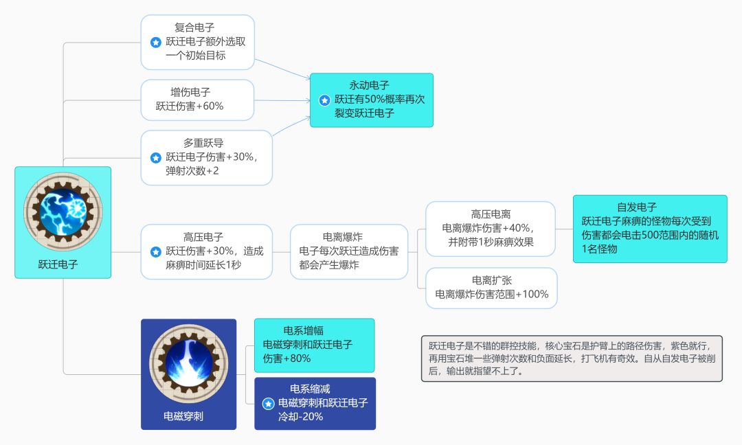 首先先讲一个误区,很多人可能都看别人玩电玩的多,而忽略了火也很强力的。电就是在你能用电秒怪的时候强,但是后面40+关之后点了4-5个80%电伤害,还打不死怪的时候,这就可以换其他的来了。 1.温压弹:它只要配合好宝石,就是从头强到尾的神技!温压弹有火、爆炸、冲击伤害,自带穿透,运气好的话刷出来超爆弹,额外还能加2穿透。还有最最重要的,燃烧区域伤害。玩火弹的前提是要有“温压弹爆炸后产生持续3秒的燃烧