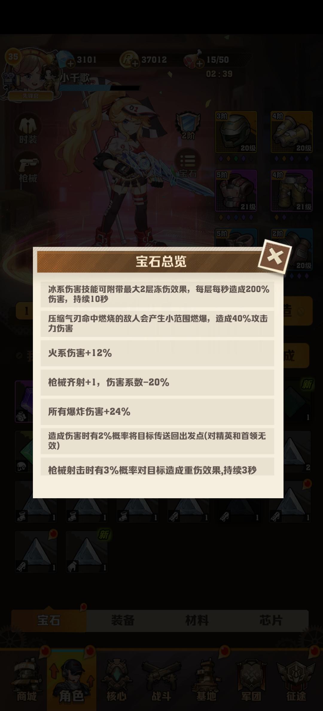 此贴仅为零氪和微氪提供一个思路,巨佬请绕道 能不买工程师就不要买,工程师就是垃圾。劝你换工程师的都是托。100以后对于基础伤害和核心爆伤有较高要求,前期尽量多拿枪皮后期才好通关。100之后建议留着负面状态延长宝石。 护士精英 可以不用风牵引 高能射线眩晕宝石 加上很多控制都能完美控制,比如 轰炸机眩晕 温压弹+2冲击击退 冰爆 车减速 枪的冰冻和眩晕宝石。101关卡 以冰子弹+分裂为主 技能