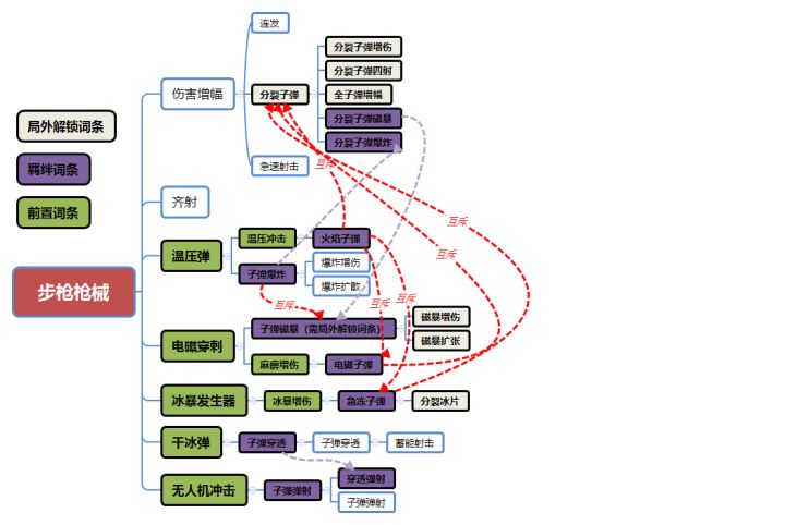 分裂子弹、分裂子弹增伤、分裂子弹四射、全子弹增幅、子弹磁暴、磁暴增伤、磁暴扩张、分裂冰片。都是需要局外解锁词条的。