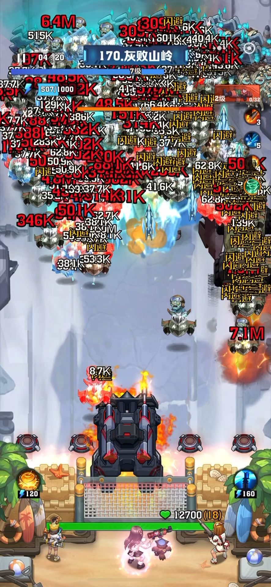 伤害差得不止一点点,因为没有红超,现在每一关开局都很难,今天抽宝箱意外抽到头部的小旋风宝石,居然继承了风百的效果,哪怕风卷走了,小旋风还能打到底下的小怪,终于过了170 #向僵尸开炮