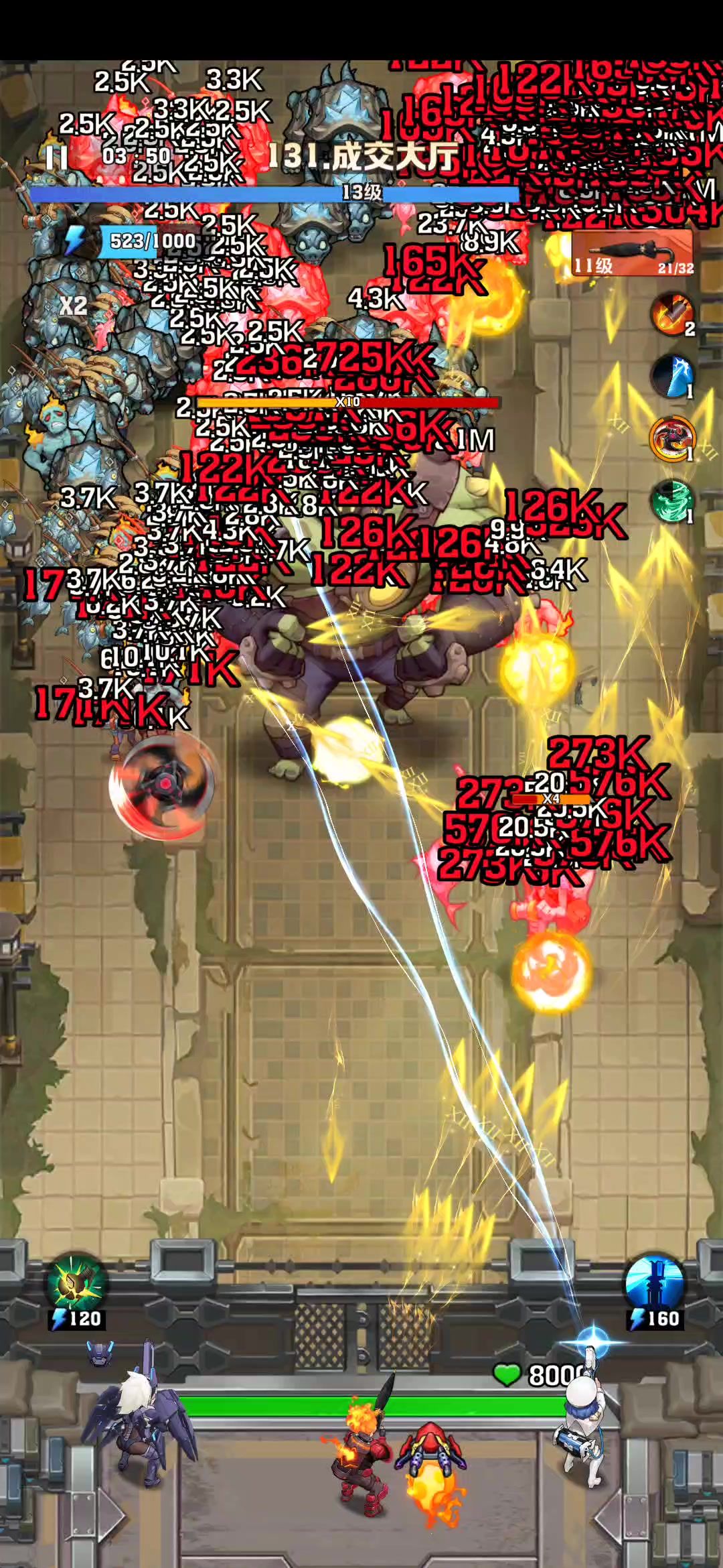 前期开局领完了公众号的一大堆兑换码,再升个5级就能去领排行榜的钥匙抽宝石了,宝石就优先镶嵌防线血量,受到伤害(紫色-8)(蓝色没抽到不知道)(绿色-4)我1个紫色4个绿色加起来减伤24点,至少到10回合怪物都破不了防,虽然打得慢但是可以完美通关拿钻石,后面要是搞到5个紫色的就可以减40伤害了