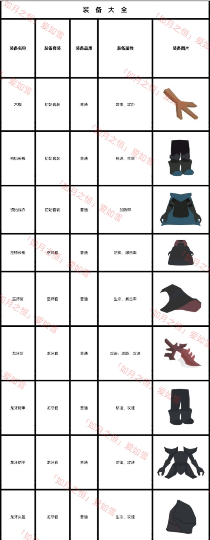 你们没有看错!还是我,你们的萌新小弟!上一期做了一个新手保姆级的攻略!也是比较全面!很重要的点也是讲的通俗易懂!主打一个手把手教你们玩!这一期打算做一个持续性的一个装备图鉴(随着版本更新而更新)以后游戏上有图鉴了大家就会很方便了!新人超保姆级攻略1:------------------分割线--------------------到这里目前版本的装备就已经展示完成了!装备之多!自行搭配!一些
