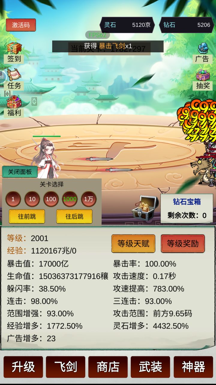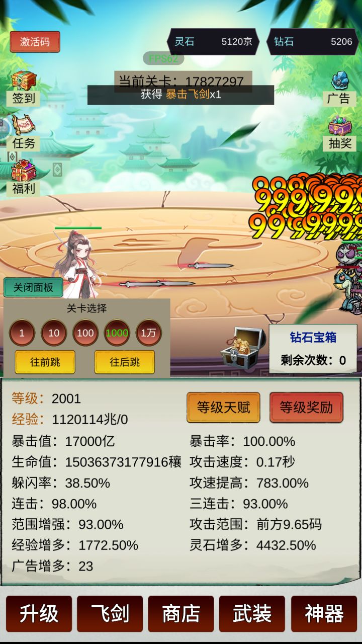 一、灵石主要买武器和饰品(够就马上买)二、升级属性攻速1000满级连击、三连击400满级生命不用升级灵石增多、经验增多、暴击值有多余灵石就升级三、商店所有东西全买四、神器只要十连五、等级天赋主升财源滚滚,可以把无影刀点满(100级)核心:最主要刷灵石,攻速和范围涉及刷怪速度最后一把武器是圣剑(5000亿攻击 要800多兆灵石)