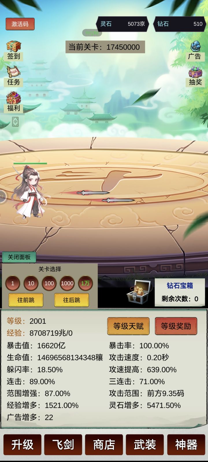 一、灵石主要买武器和饰品(够就马上买)二、升级属性攻速1000满级连击、三连击400满级生命不用升级灵石增多、经验增多、暴击值有多余灵石就升级三、商店所有东西全买四、神器只要十连五、等级天赋主升财源滚滚,可以把无影刀点满(100级)核心:最主要刷灵石,攻速和范围涉及刷怪速度最后一把武器是圣剑(5000亿攻击 要800多兆灵石)