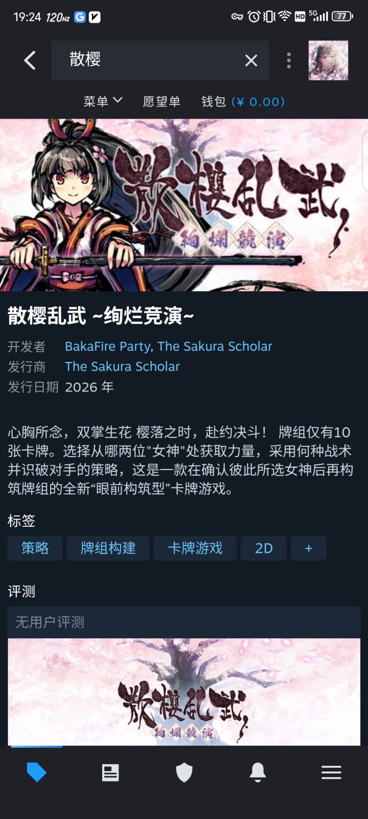 请多多支持散樱乱武 ~绚烂竞演~ !散樱乱武 ~绚烂竞演~ Steam商店页已经审核通过https://store.steampowered.com/app/3446770/Sakura_Arms_Radiant_Duels/计划在近日公开测试版请加入愿望单支持!