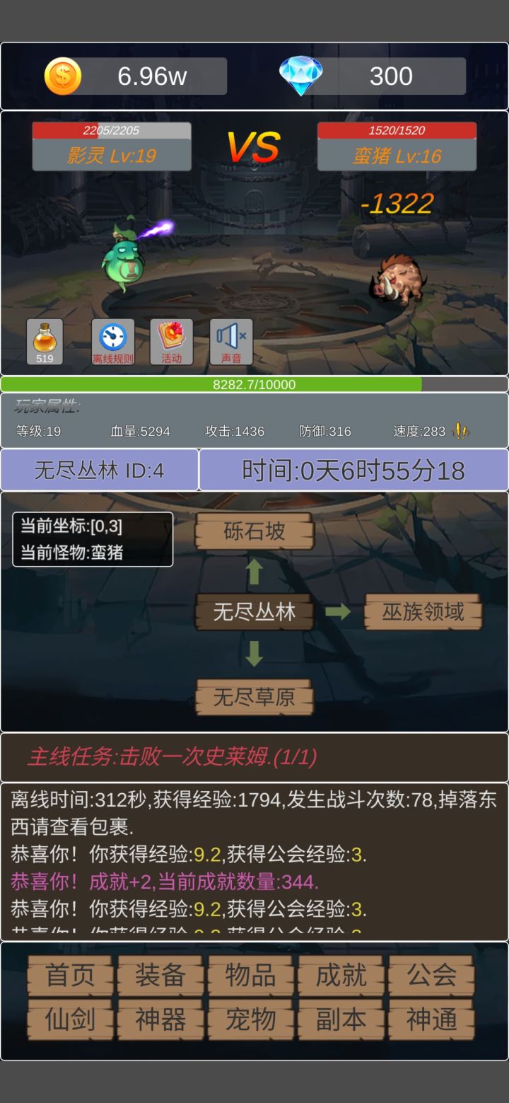 离线刷成就必须得满血刷怪,到这个图凭现有战力根本做不到(凹暴击都做不到,现在至少得两次暴击,前面的都是看暴击过),又是动不动几千次,boss刷神器又打不过,就靠着升50级新装备和神通才能过了