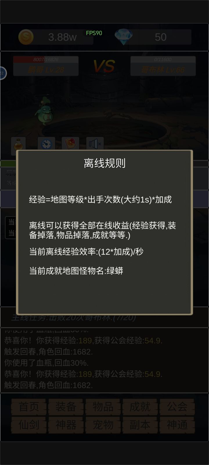 离线刷成就必须得满血刷怪,到这个图凭现有战力根本做不到(凹暴击都做不到,现在至少得两次暴击,前面的都是看暴击过),又是动不动几千次,boss刷神器又打不过,就靠着升50级新装备和神通才能过了