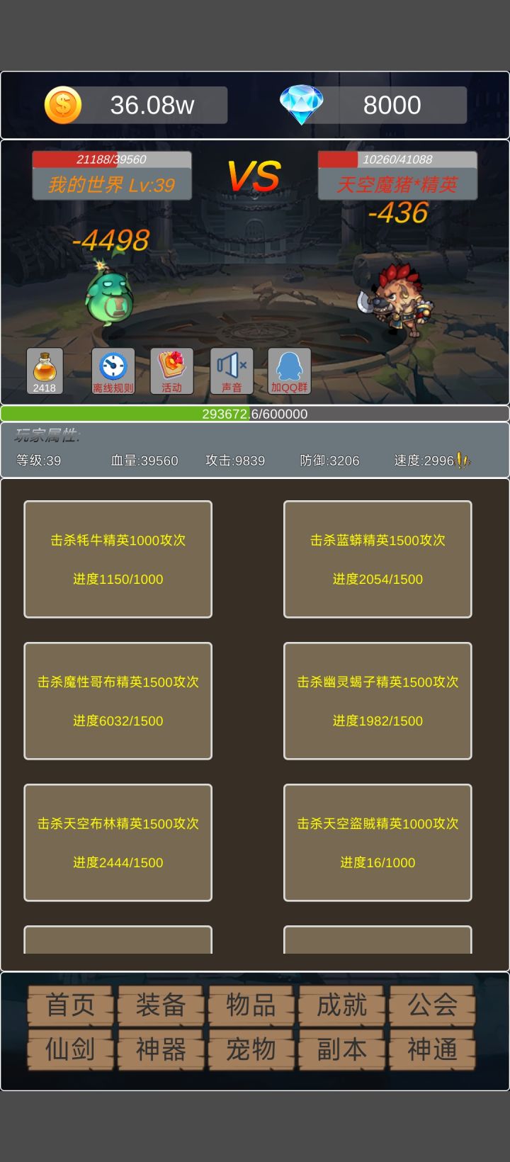 离线刷成就必须得满血刷怪,到这个图凭现有战力根本做不到(凹暴击都做不到,现在至少得两次暴击,前面的都是看暴击过),又是动不动几千次,boss刷神器又打不过,就靠着升50级新装备和神通才能过了