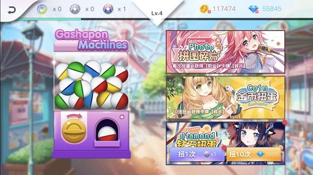 扭蛋玩法相信大家都不陌生,扭蛋其实和传统的抽卡类似,玩家通过扭蛋随机获得超值的奖励,并且有一定的概率直接获得社员奖励!在绝对音域里,玩家可以使用道具开启扭蛋,并且在任务和活动中都会免费赠送道具,因此扭蛋并不只是付费用户的专利。扭蛋一共分为拼图扭蛋、金币扭蛋、钻石扭蛋三种。其中拼图扭蛋只会产出社员的拼图碎片,适用于想快速提升社员品阶的玩家参与;金币扭蛋可以产出非常丰富的游戏资源和社员拼图,适用于金
