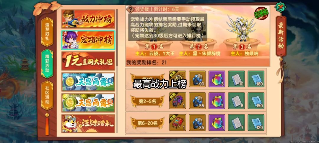 最高战力上榜莫名其妙一个角色两个战宠都上榜了,刚好把我挤出了20名,反馈了三天问题,偷摸的把bug修了我又恢复了20名,奖励不给我补?反馈了三天客服光说上报了到时候联系通知我,通知哪里去了?自己服务器问题亏我自己吃呗?