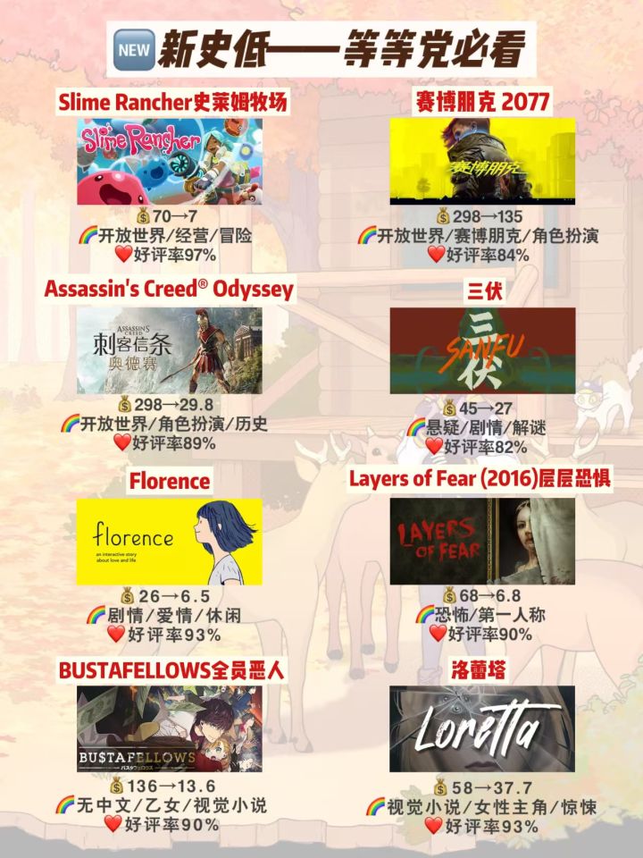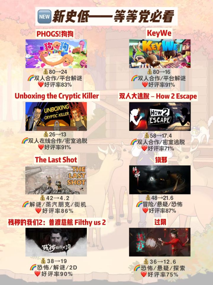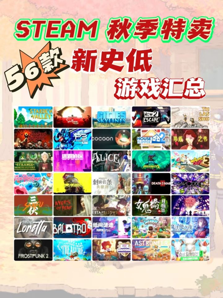 量大管饱‼️steam秋促⑤⑥款🆕新史低游戏汇总