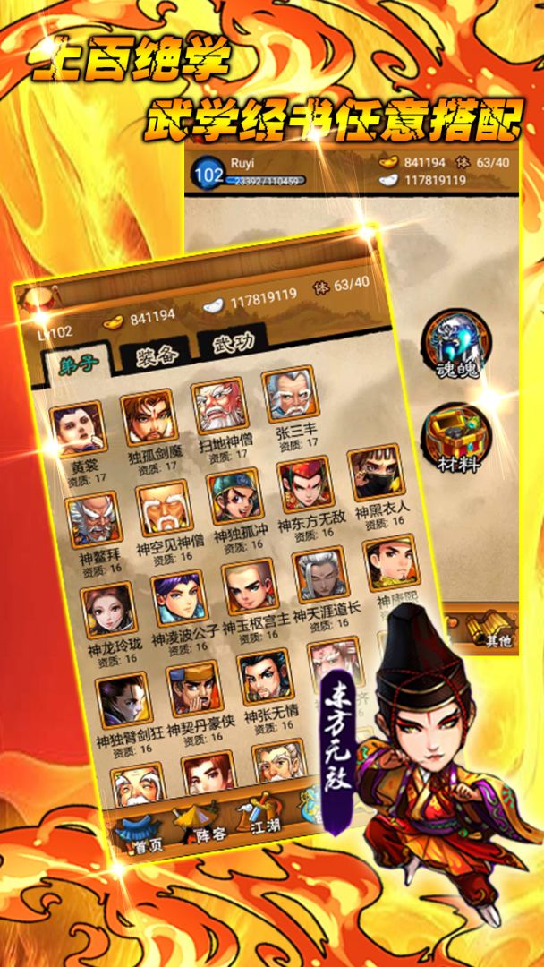 《群雄江湖》是一款以古典武侠为题材,复合RPG+策略玩法的卡牌大作,一经推出就大受欢迎,成为新浪微博“年度最佳手游”。游戏中精美的人物设计、酷炫的武功特效重现畅快淋漓的招式,独具匠心的奇遇系统更是让玩家赞不绝口,你将有机会带领泡妞高手韦爵爷、古灵精怪敏郡主、顶天立地乔帮主等二百余位武林豪杰逐鹿中原,问鼎江湖。