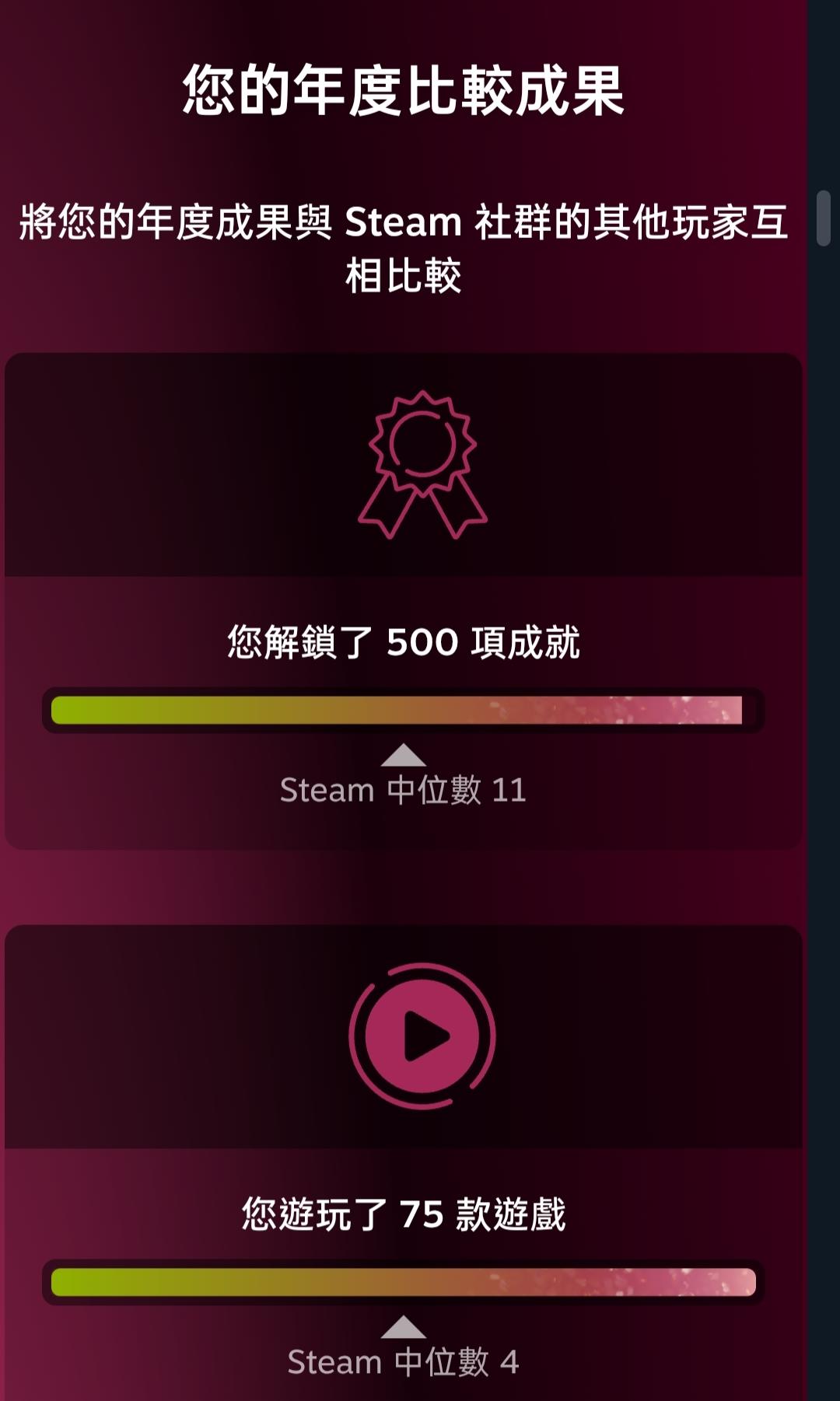 玩而玩家游玩家查看2025年中在 Steam 上所花时间(1月1日~12月14日)的总结,还能看到启动次数等信息。玩家游玩数量中位数仅为4,又是光买不玩的一年,也就是说大多数玩家都是买了不玩。(什么,都买了还要玩吗?)游戏太多,而时间太少,我们有了可以玩游戏的设备与资金后,却没了玩游戏的时间。我的游玩统计那么多还是因为我用了第三方软件挂卡。各位玩家来晒一晒自己的