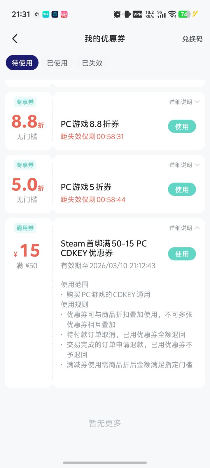 这个50-15的券算下来还不如去其他平台便宜