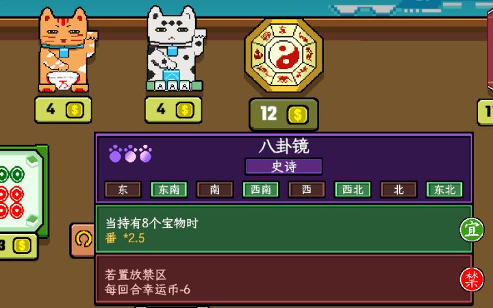 风水喵将看着不咋地,画面糙糙的,但风水宝物摆八方位的设定超有新意,搭配技能卡玩着超有成就感!
