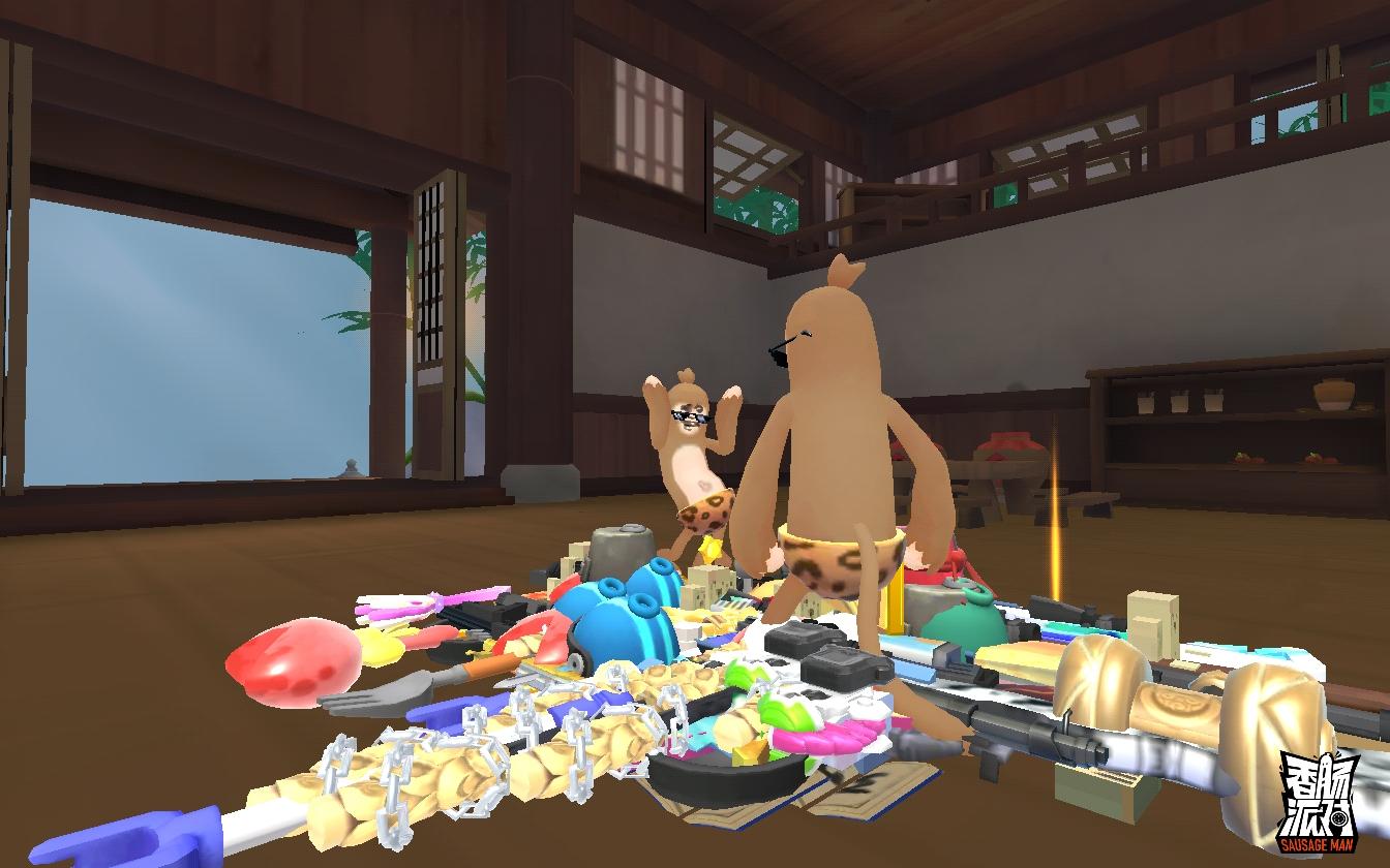 《香肠派对》拥有彩虹岛、战斗岛和超新星三种经典模式地图,地图中分布有城镇、野点、树丛、草丛等,游戏时建筑里会刷新武器和装备。其中经典派对、街机派对、竞技派对等对战玩法时,角色默认会有100点体力、100点心情值和200点背包容量每局游戏支持100名玩家对战,他们将被投放在地图上空,跳伞落地后所有人一无所有。通过寻找岛上的武器与道具进行生存,所拾取装备不能超过背包上限,角色可携带三把武器,一把近战武