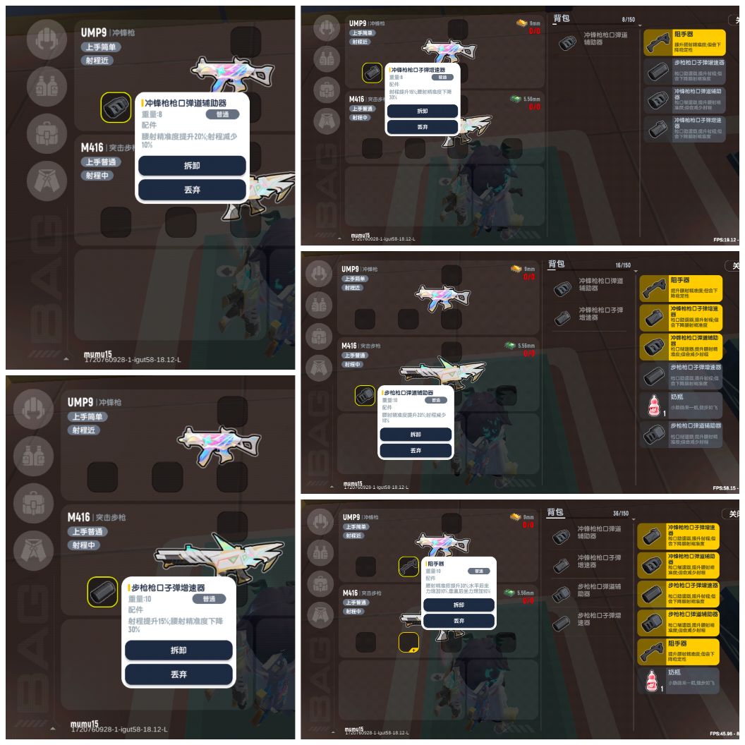 哈喽大家好!本攻略是新枪械配件的介绍以及搭配效果,下面,就来给大家介绍一下枪械的配件以及实战效果和配件搭配~ 首先来让我们看一下第一个:步枪枪口子弹增速器 射程提升15%,腰射的精准度下降30% 【装备后】 步枪枪口弹道辅助器 腰射 精准度提升20%,射程减少10% 【装备前】 【装备后】 枪口配件-冲锋枪 >>冲锋枪枪口子弹增速器 射程提升15%,腰射 精准度下降30% 【装备前】 【装备后】 >