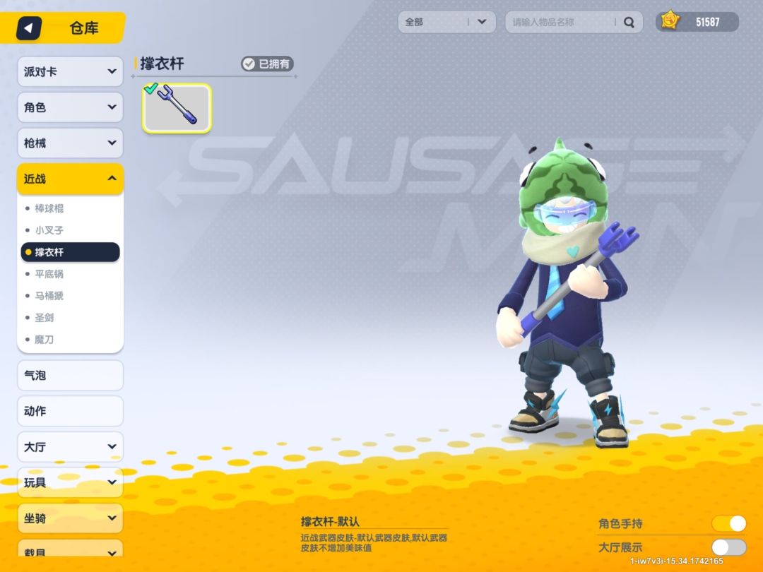正式服ID:73gjwx 我向大家介绍并了解的是新近战武器一一[撑衣杆] 1、介绍:[撑衣杆]顾名思议指得就是平常的取衣服的工具,但只是如此你便完全小看它了!做为达达全体工作人员的心血,"香肠派对"的干儿子,它可是很强得。 外形:好似世界中的撑衣杆,钩部为蓝色,杆部为白色。畜力之后,它与其它近战武器不同的是它是杆部拉长,大概比巴士高一点点 攻击方式:第一次和第二次攻击与磨刀(新版磨刀,大家可