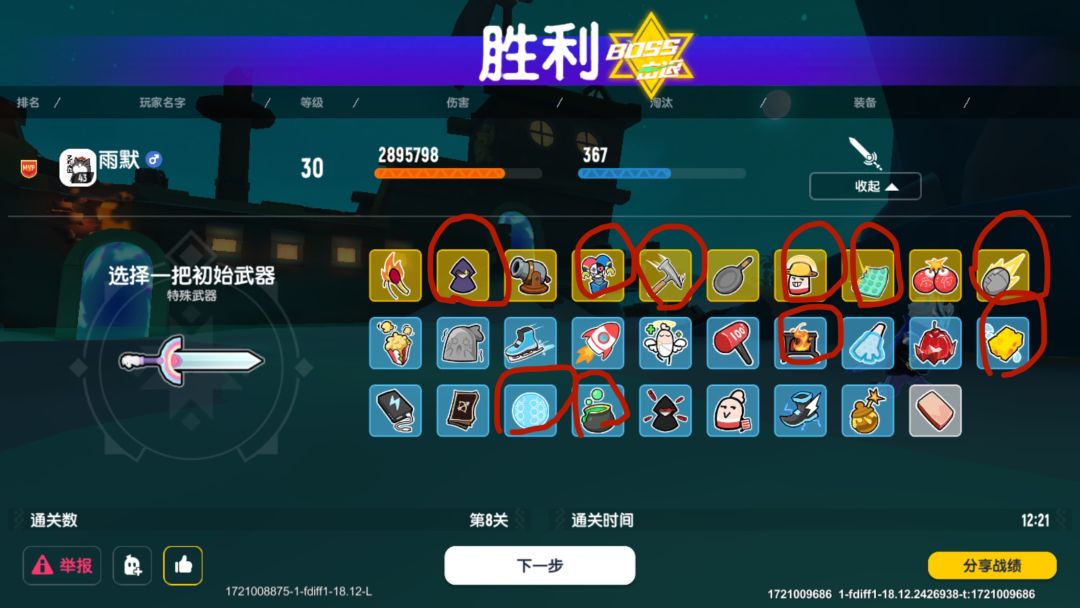拳套以宣布退役 沉船之战突破200万伤害 圈出来的优选 圣剑攻击核心装备(指压板)(海绵) 圣剑防御核心装备(铁皮鸡蛋)(大喂王)(充能护盾) 辅助装(极速乌龟)(经验袋) 注:千万别选豪猪(金色宝贝)