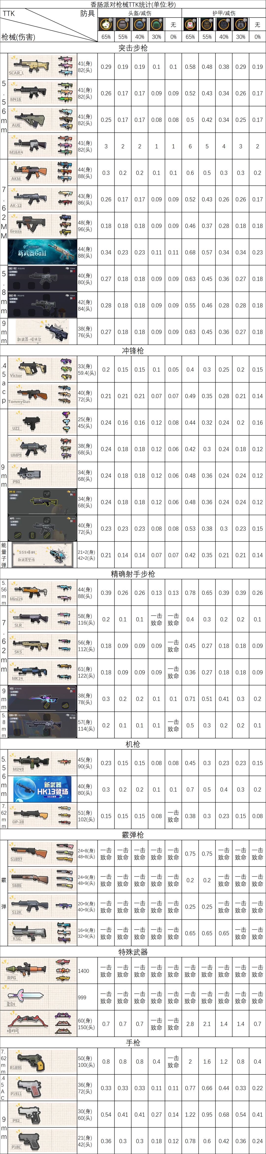 注1:本统计表暂不包括能量武器 注2:本表格除VSS为瓦特实测得到的数据以外,其他数据均来自官方发布的相关公告