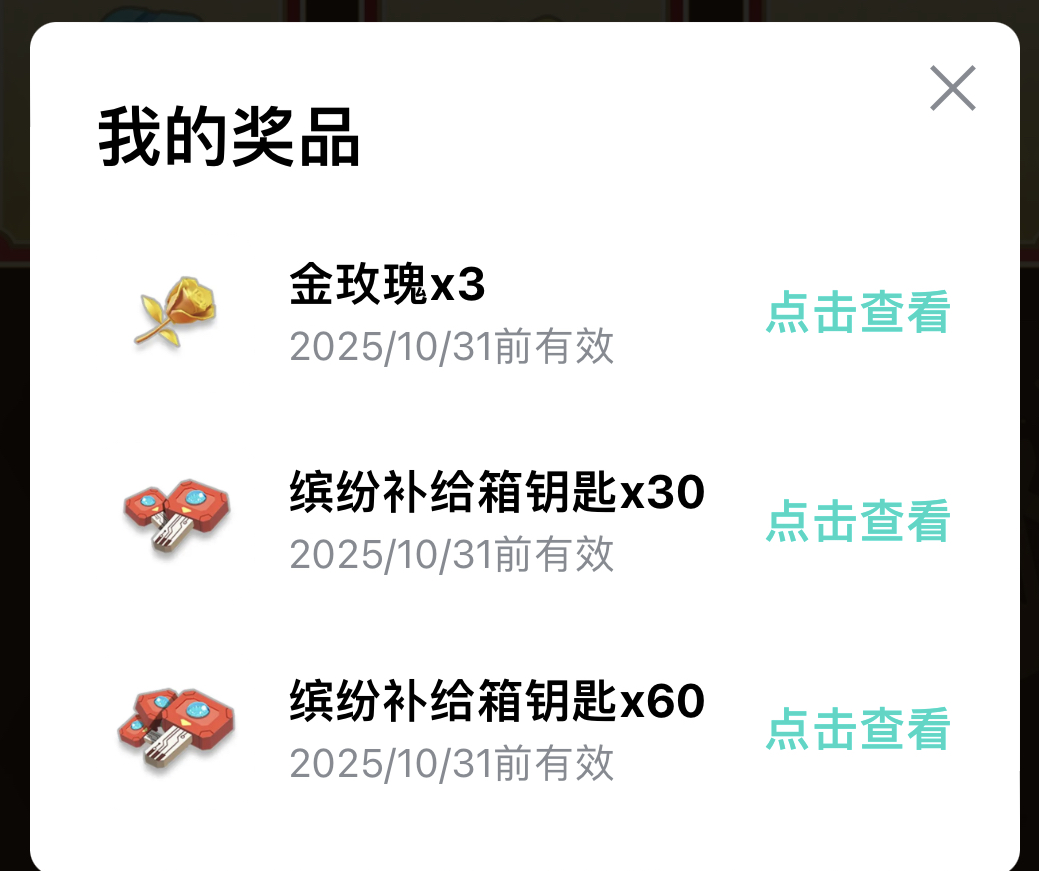 达达发的福利别忘了领哦,兑换码: SORRYTAT 在设置,右上角,账号信息左边,进去转页面兑换。 内容包括:60个彩虹补给箱钥匙(粉)、60个缤纷补给箱钥匙(红)、60颗糖果。