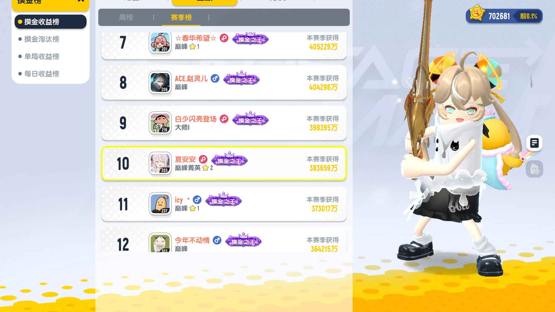 赛初嘲讽他刺激到了才打榜 几个人一个号的,论单日单人摸金还是我更胜一筹 #香肠派对 #元气骑士前传 #原神 #崩坏星穹铁道 #暗区突围 #musedash喵斯快跑 #王者荣耀 #明日方舟 #心动小镇 #今天游戏圈发生了啥 #浅评一下 #游戏安利 #游戏推荐 #游戏资讯 #发现好游戏