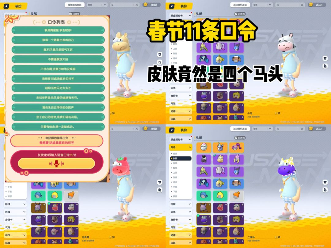 春节口令里面原来是四个永久马年头部皮肤!#香肠派对