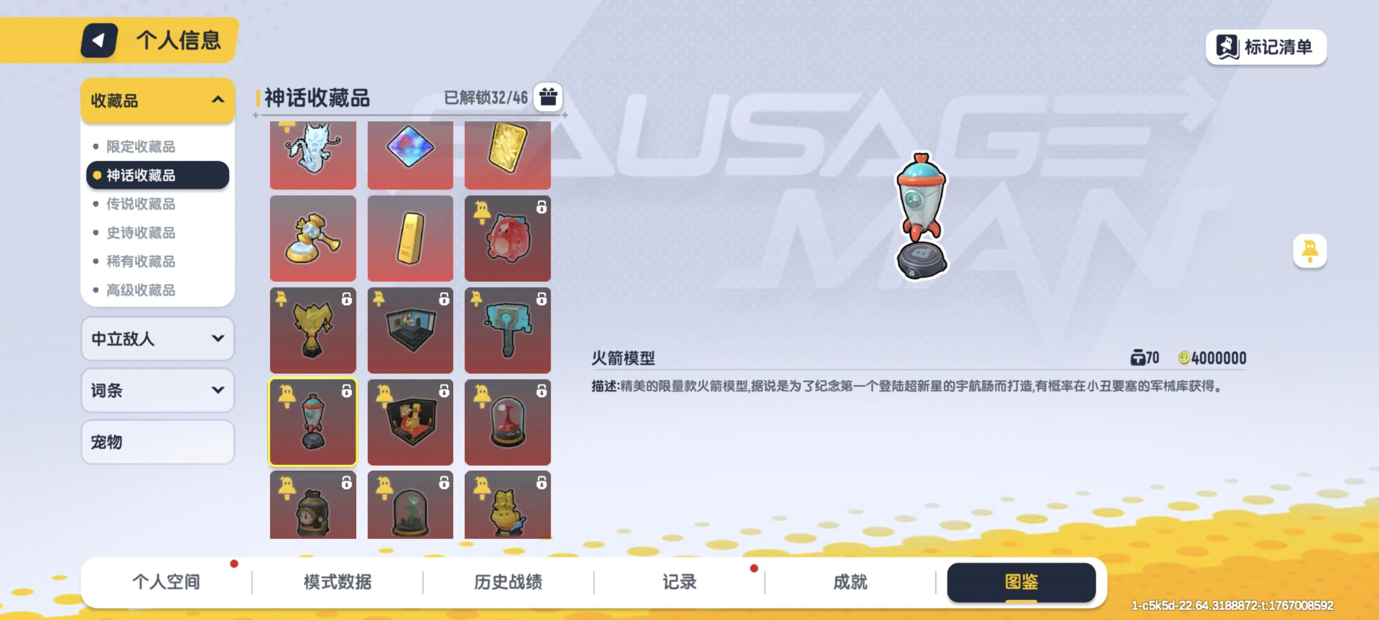 火箭模型在军械库才能刷出,概率是星夜孤肠