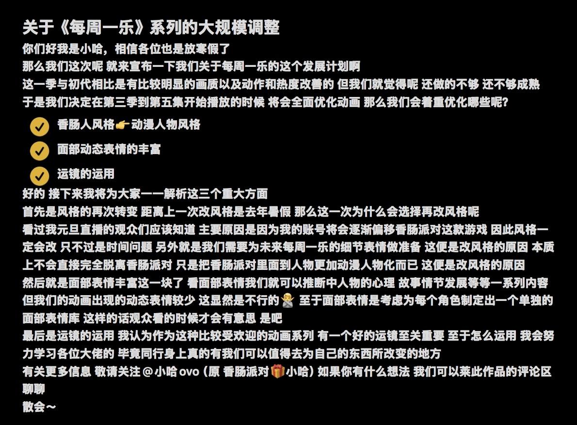关于香肠系列每周一乐的重大更新策略