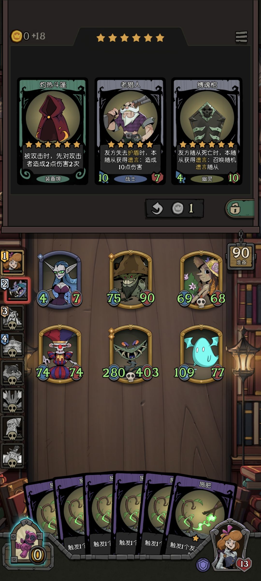 本帖英雄:黑猫/占卜师/杂货商人(持续更新) 注:本攻略参考天梯分数18000w以上对局,每次讲解3位英雄,共15期攻略,攻略包含着详细排名,运营技巧,过渡手段,角色特色,加强方案。若有补充,欢迎评论交流。 [22]黑猫 技能:1金币,你的下一张咒术生效两次 『英雄排名』 T0前 『英雄特色』 黑猫最强的地方其实是可以开两次三连奖励,有些咒术开两次其实不会扩大多少优势,本帖子借用黑猫讲一讲月圆之夜