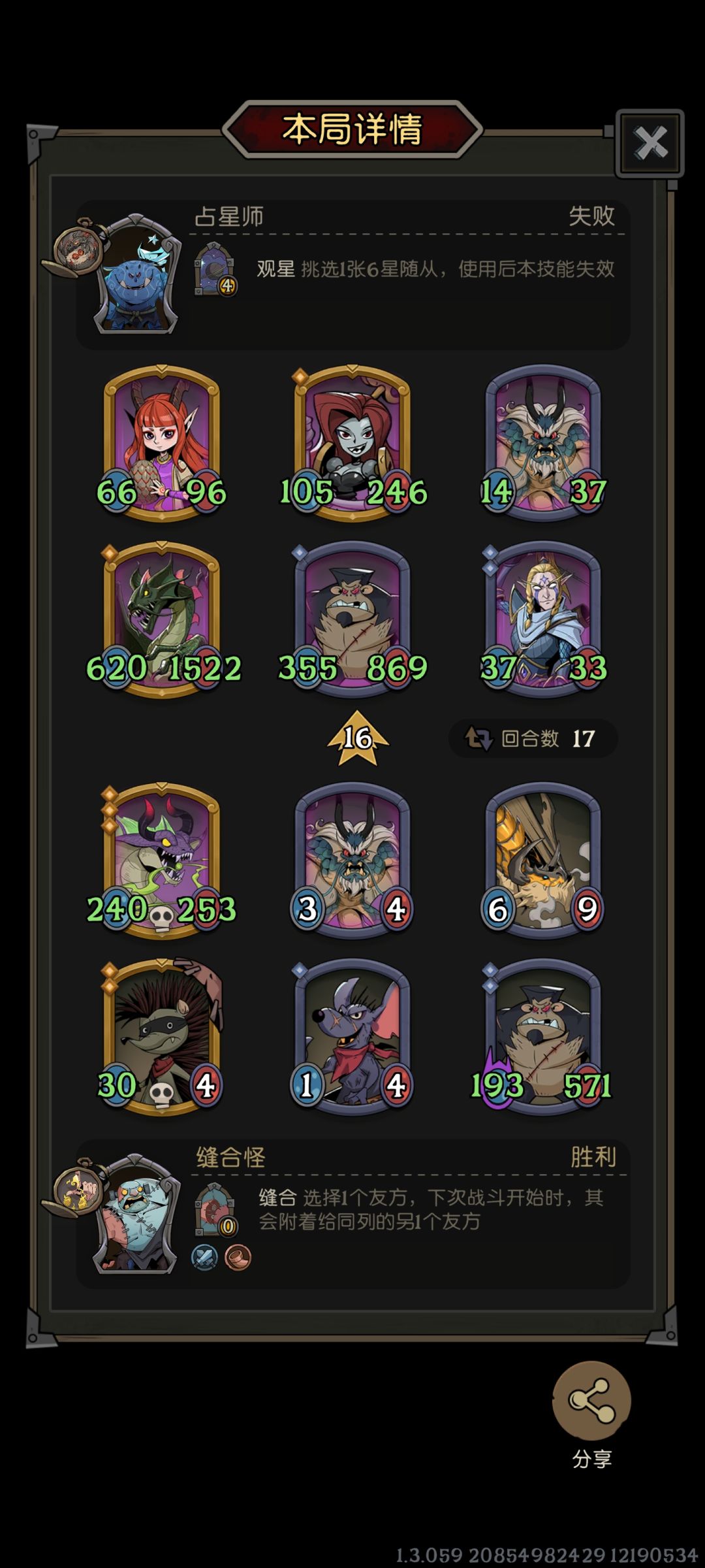 思路就是五个青蛙就能无限,在此基础上,删减了其他的挂件随从,选择用装备来破盾和启动。 灵魂结晶用来启动,然后靠青蛙的技能来打输出,此外的特例是有盾的情况下是打不出技能的,所以给一号位青蛙上了个盾并给了一个弹幕,用来增加稳定性。还可以加强化之类的buff来增加输出